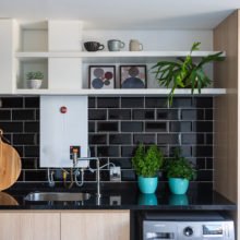 Nesse exemplo, graças aos objetos escolhidos, o móvel ganhou uma nova função: a de estação de jardinagem! Além de conferir o tom ideal para a narrativa que se busca, a peça se tornou funcional ao armazenar ferramentas de manutenção do paisagismo, além de recipientes exibindo a exuberância amarela dos girassóis.
