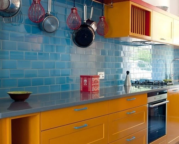 Se você é daqueles que adoram explorar diversas combinações de tonalidades, esta cozinha é uma inspiração encantadora! O projeto do Madam Studio, que combina azulejos de metrô azuis, armários amarelos e elementos em vermelho, tem uma atmosfera supervibrante. As formas tradicionais da marcenaria trazem um contraponto de sobriedade na medida!